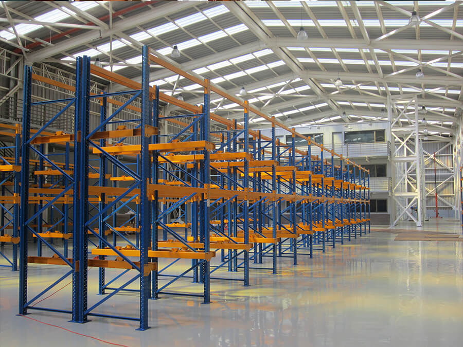 Sistema de palletización, creado especialmente para optimizar al máximo el espacio de almacenaje. Su diseño, basado principalmente en calles de almacenamiento, entrega la posibilidad de cargar sobre los mismos pasillos de trancito y a su vez en variados niveles de altura, logrando aumentar notablemente la cantidad de posiciones almacenadas, ya que, elimina en aproximadamente un 80% el espacio destinado solo a trancito.